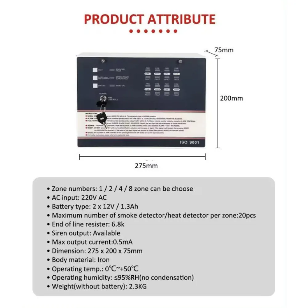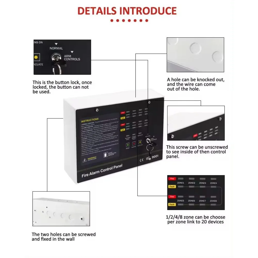 The wired fire panel type ensures a stable and secure setup, which is straightforward to install and simple to operate. This user-friendly system is ideal for conventional fire alarm setups in both commercial and residential buildings.