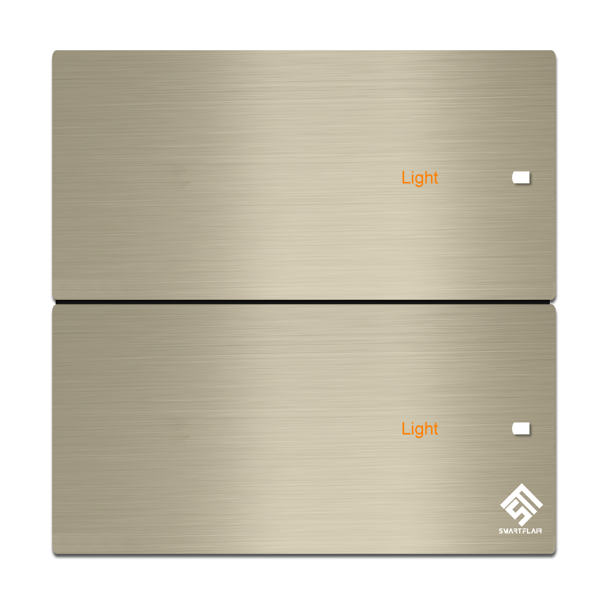 2gang touch smart switch Champagne Gold H-series is a cutting-edge smart switch that combines elegant design and advanced functionality. With its champagne gold color and brushed stainless steel finish, this 2gang touch smart switch adds a touch of sophistication to any home or office decor. It offers seamless connectivity, allowing multiple panel installations to create a unified control system. This touch smart switch has Wi-Fi capabilities, linked devices can be scheduled and controlled remotely. This smart light switch offers a practical and fashionable answer for controlling your lights, fans, or other appliances.