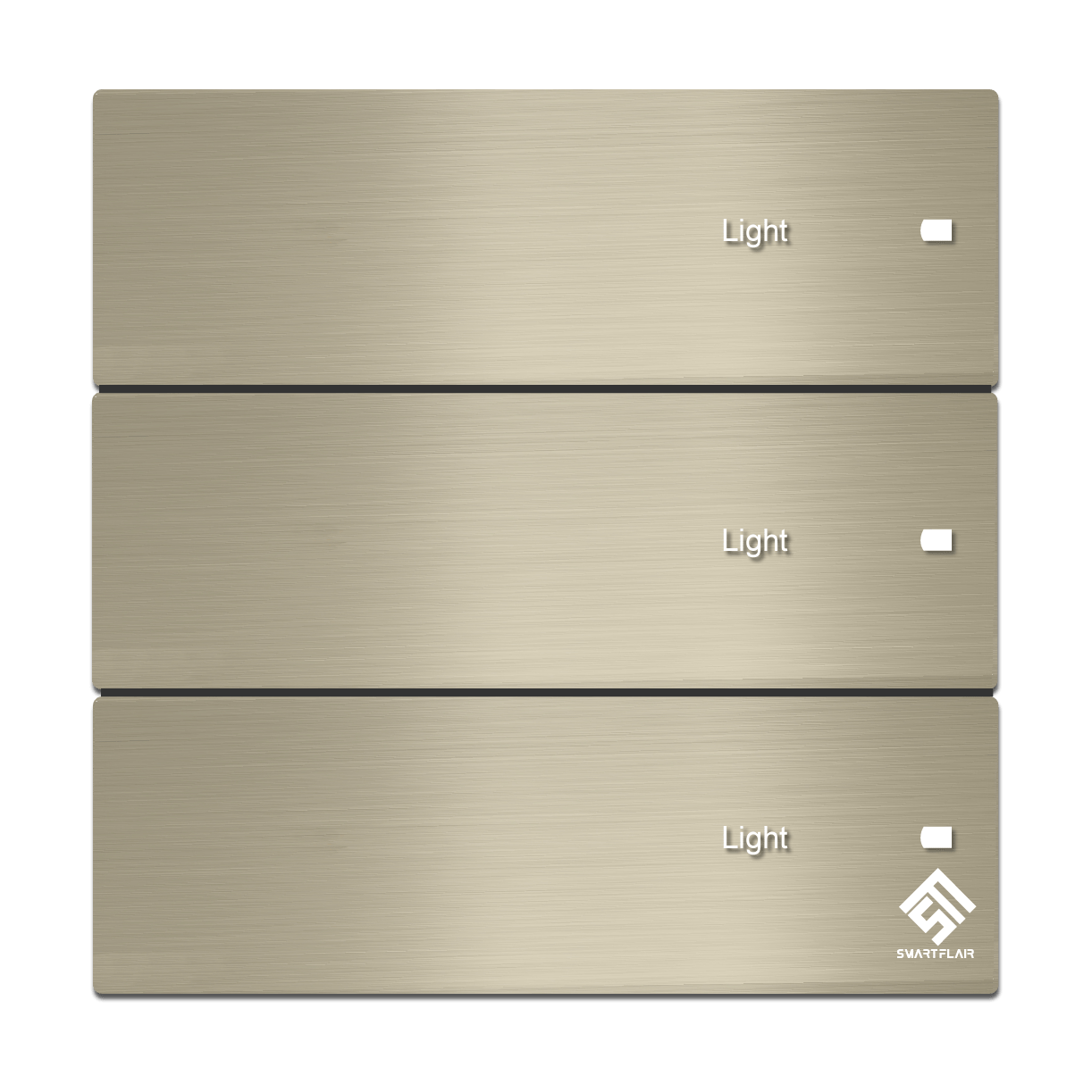 3gang touch smart switch Champagne Gold H-series made to make controlling your appliances and lighting more convenient. This 3gang touch smart switch fits in perfectly with any contemporary living environment because of its sleek and fashionable champagne gold finish. With Wi-Fi connectivity, it enables remote management and control of your lights and gadgets from any location using a smartphone or voice commands. The touch smart switch is a crucial component of your smart home ecosystem since it provides a wealth of advanced functions.