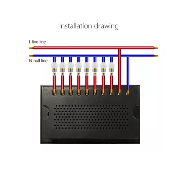 Installation for the Wi-Fi smart switch is straightforward. Turn off power. Connect wires. Secure the switch and download the mobile app for Wi-Fi setup. light switch is compatible with voice assistants like Alexa and Google Home, works with iOS and Android devices, connects to a 2.4GHz Wi-Fi network, and can control standard, LED, and dimmable lights. 8gang switch is designed to fit UK standard electrical wall boxes, ensuring compatibility with existing infrastructure.