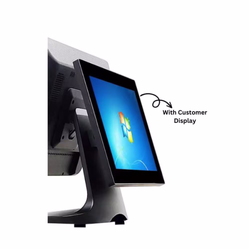 Smartcore POSPRO PT-5014 15″ inch display with 11″ customer display is built for versatility and performance, featuring a smart and durable 15-inch capacitive touchscreen that delivers fast and responsive interaction. Powered by a 3rd Generation Intel Core i3 processor (2.8GHz, 4MB Cache) and equipped with 8GB DDR4 RAM (expandable up to 16GB), it ensures smooth multitasking and fast transaction handling. A 256GB SSD provides rapid data access and reliable storage. The system supports multiple operating systems including Windows XP, 7, 10, 11, and Linux, making it adaptable for various business environments. Its robust I/O ports (USB, HDMI, COM, VGA, RJ45, and WiFi) and integrated MSR (Magnetic Stripe Reader) support seamless connectivity and payment solutions. With customer display options ranging from 9.7” to 15” or VFD 2-line, this POS is ideal for retail, hospitality, and restaurant settings. Housed in a sleek plastic and aluminum alloy base, it combines aesthetics with durability, ensuring reliable performance in demanding environments.