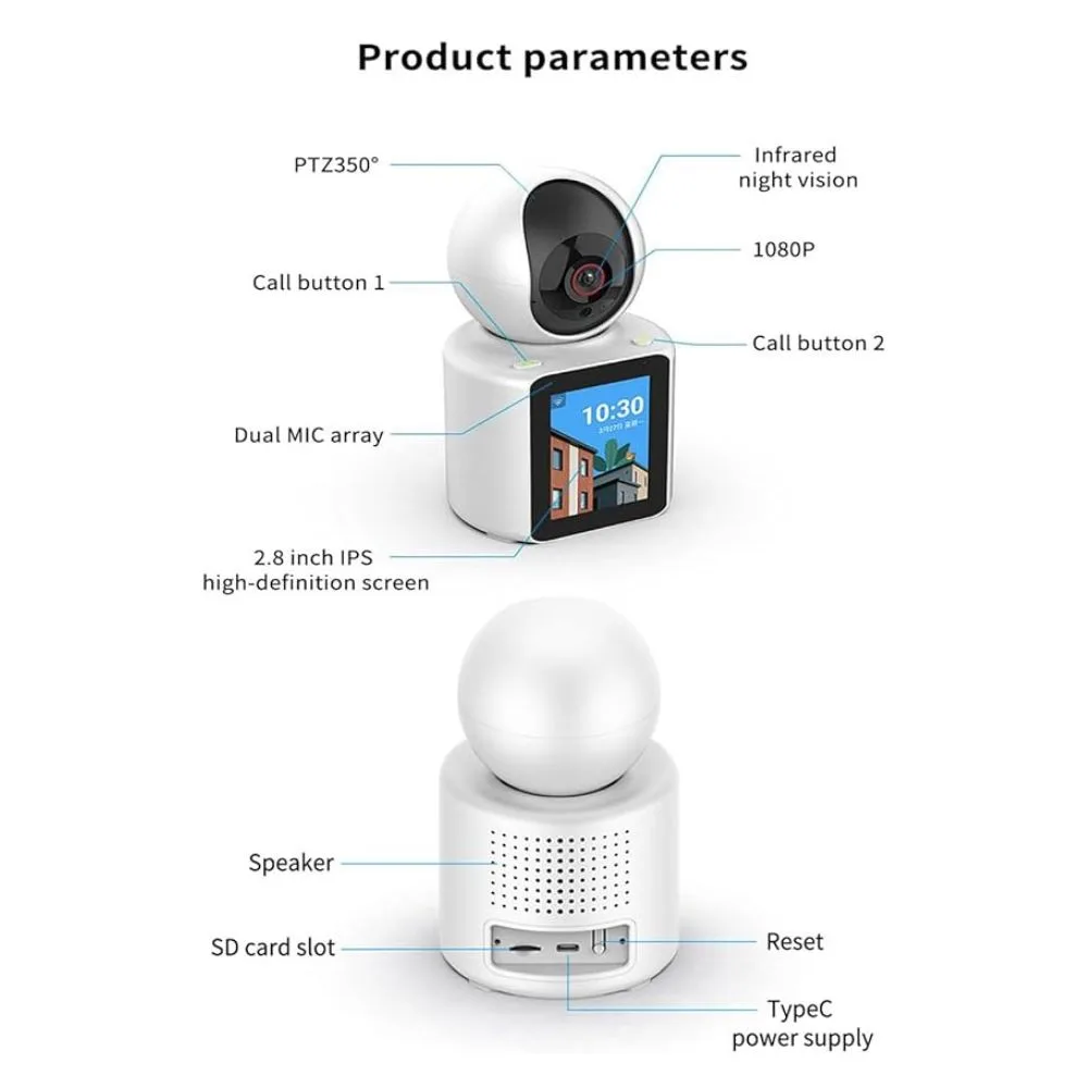 Stay connected with your loved ones with the camera’s 2.8-inch IPS screen that supports two-way video communication. It’s perfect for checking in on family members, making everyone feel closer, no matter the distance.