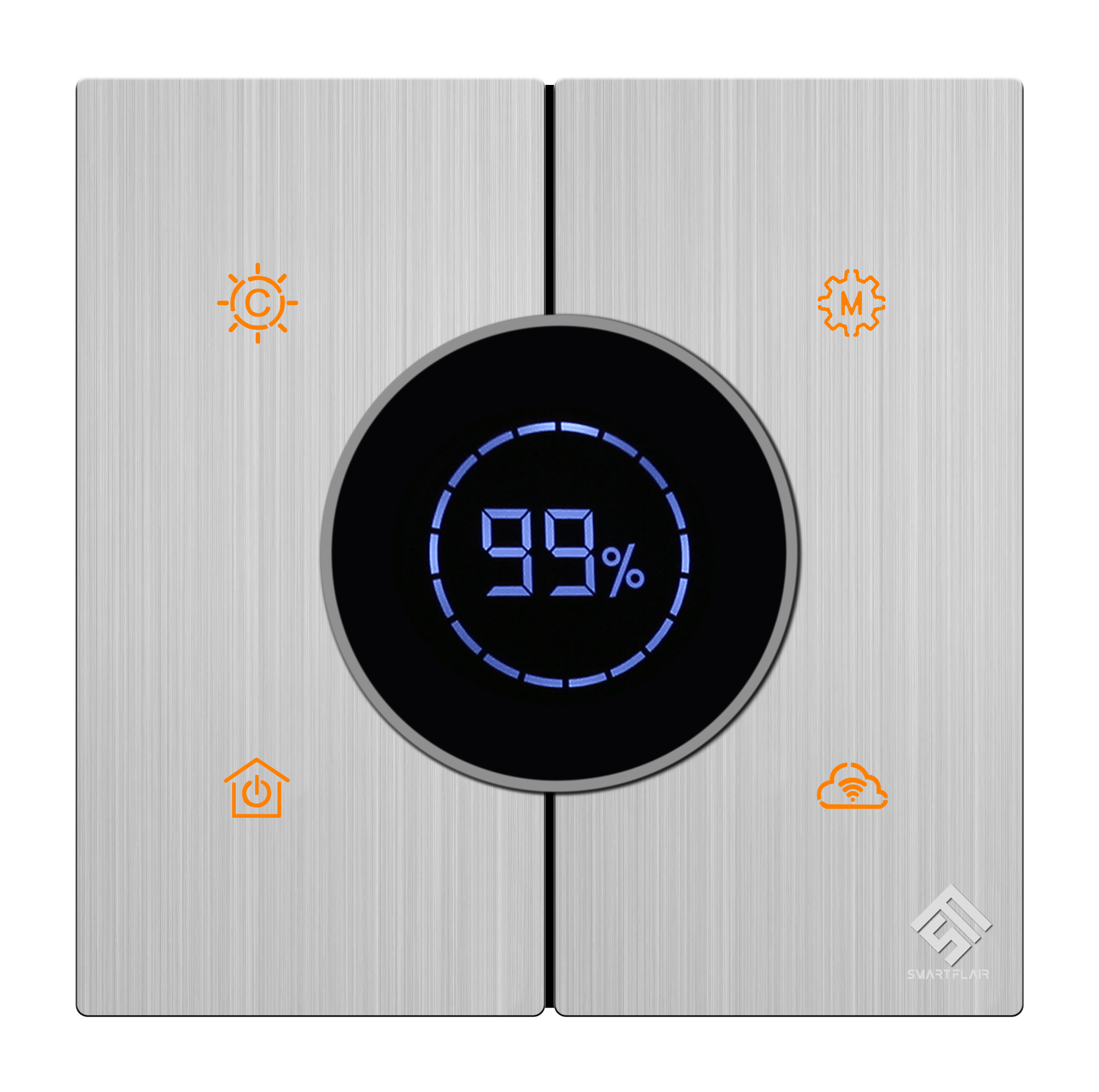 Smart Wi-Fi light dimmer switch combines style and functionality. With its sleek design and glistening metallic silver finish, it adds elegance to any room. The brushed aluminum switch button panel provides a premium look. Smart dimmer switch fits perfectly into standard 86 wall boxes and is designed for UK standards, ensuring easy installation and compatibility. The KNOB ring allows precise dimming control with 1-18 gears, and the color temperature key lets you adjust LED light color from 15% to 99%. Dimmer light switch supports 0-10V output, making it compatible with a wide range of LED lights. It also features a switch on/off key for convenient control. With ZigBee 3.0 protocol, it seamlessly integrates into your smart home ecosystem. Create the perfect lighting atmosphere with dimming scenes like C1=30%, C2=50%, and C3=70%. This versatile and customizable switch enhances lighting control in your smart home setup.
